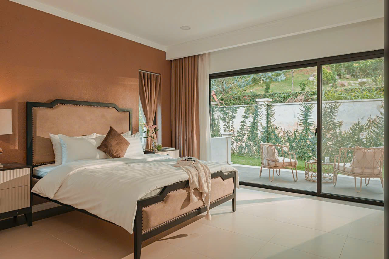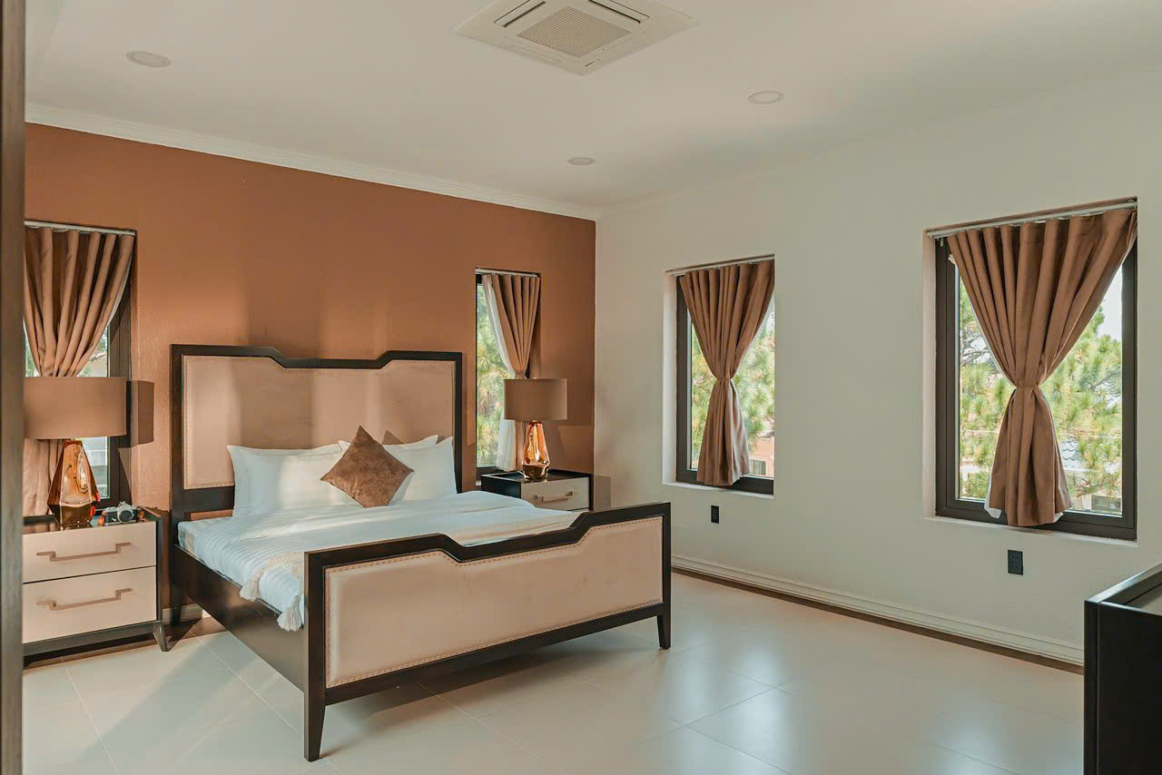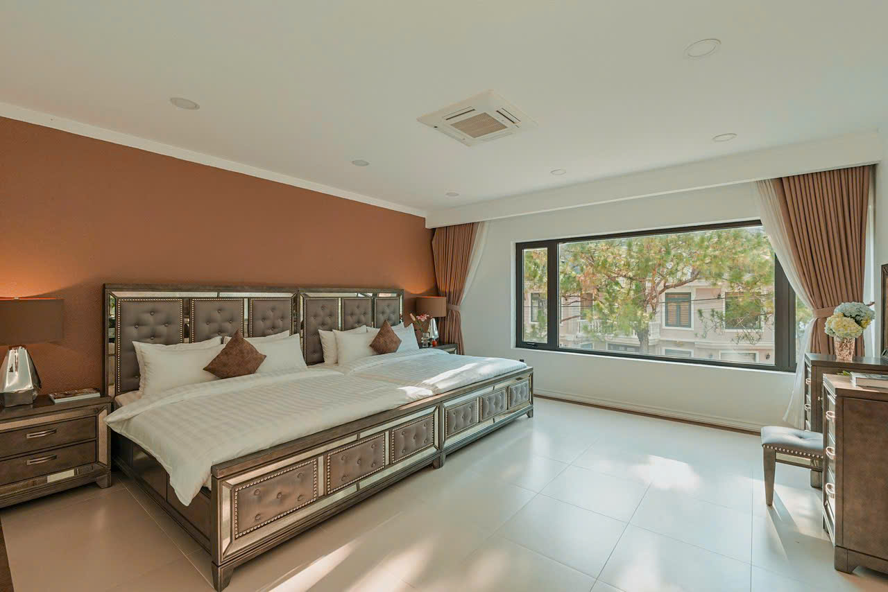 Với những đường nét kiến trúc sang trọng, thanh thoát theo tone màu trầm, Nội thất nhập khẩu cao cấp được lựa chọn tỉ mỉ. Phòng ngủ ấm cúng, sang trọng, tiện nghi.