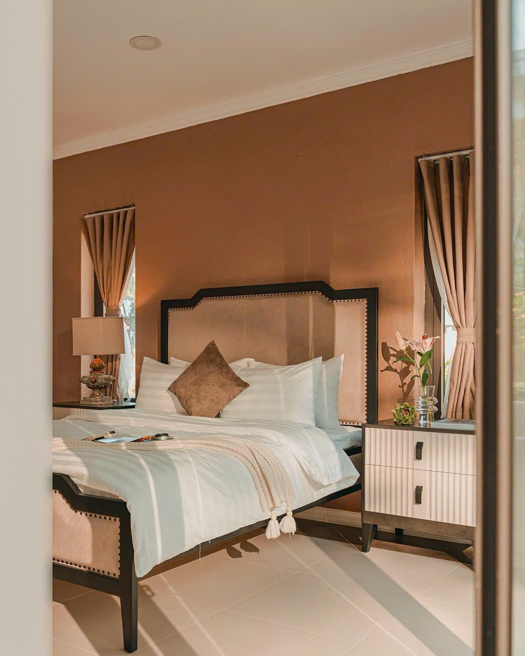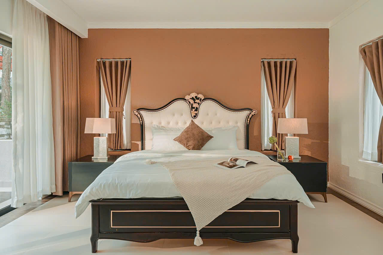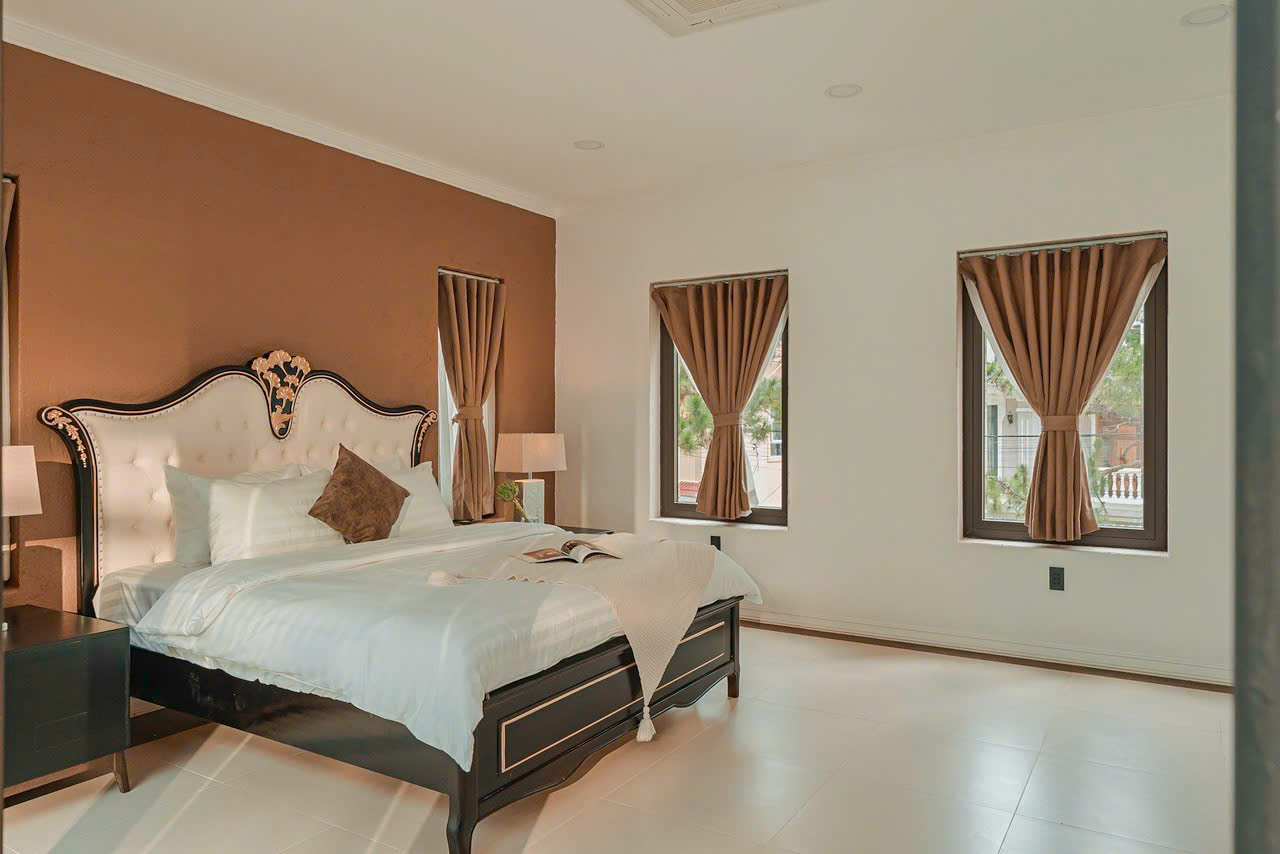 Với những đường nét kiến trúc sang trọng, thanh thoát theo tone màu trầm, Nội thất nhập khẩu cao cấp được lựa chọn tỉ mỉ. Phòng ngủ ấm cúng, sang trọng, tiện nghi.