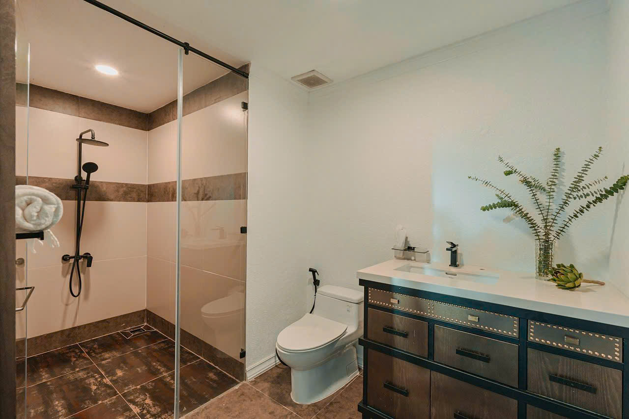 •Tổng 5 phòng vệ sinh sạch sẽ trang bị sẵn đồ dùng cá nhân. (2wc khép kín,3wc ngoài)