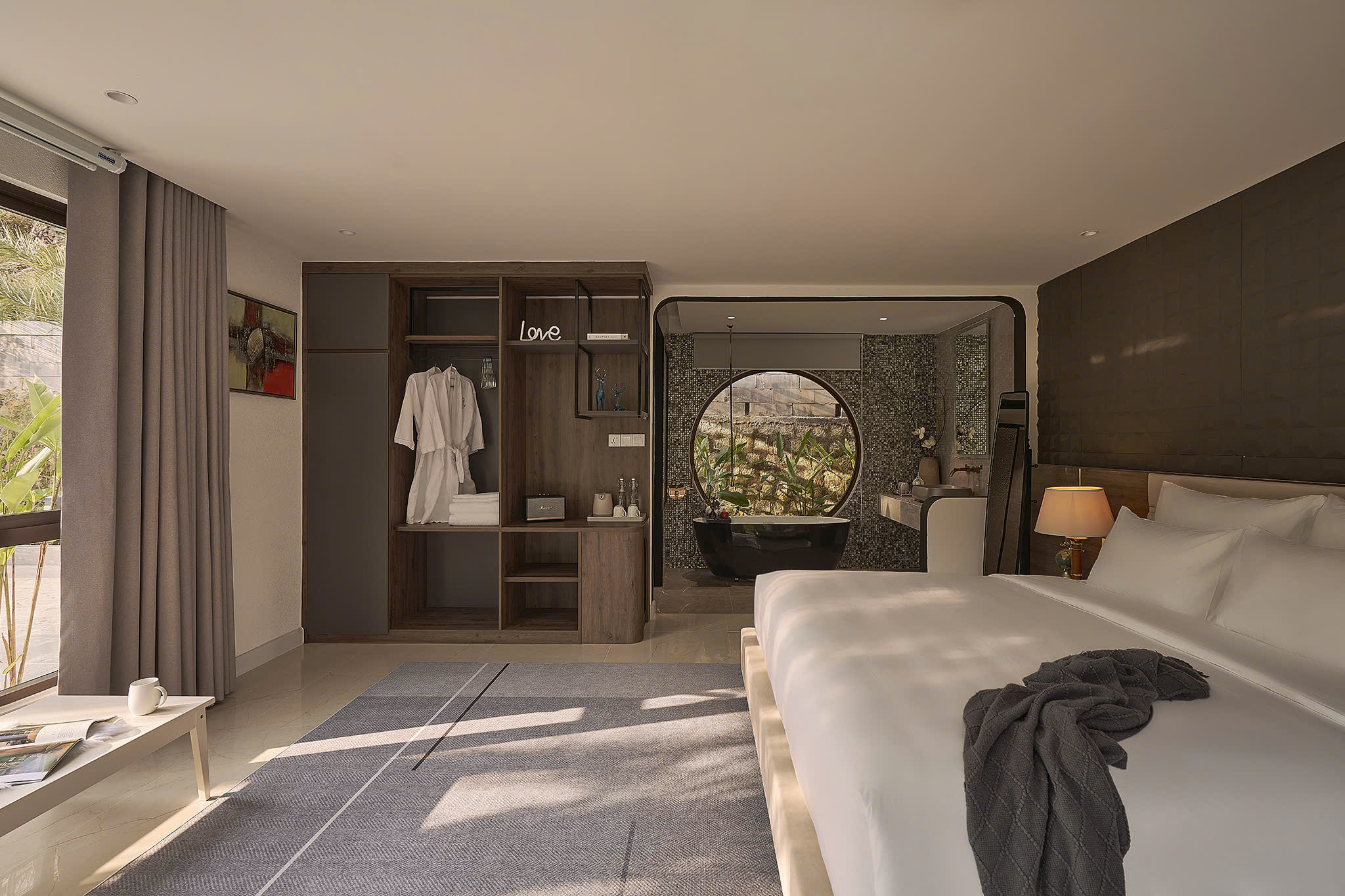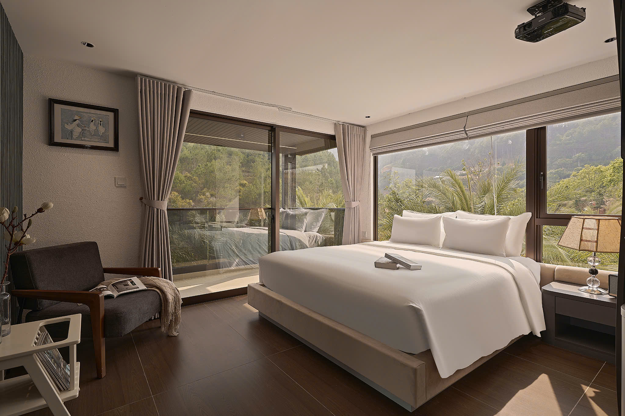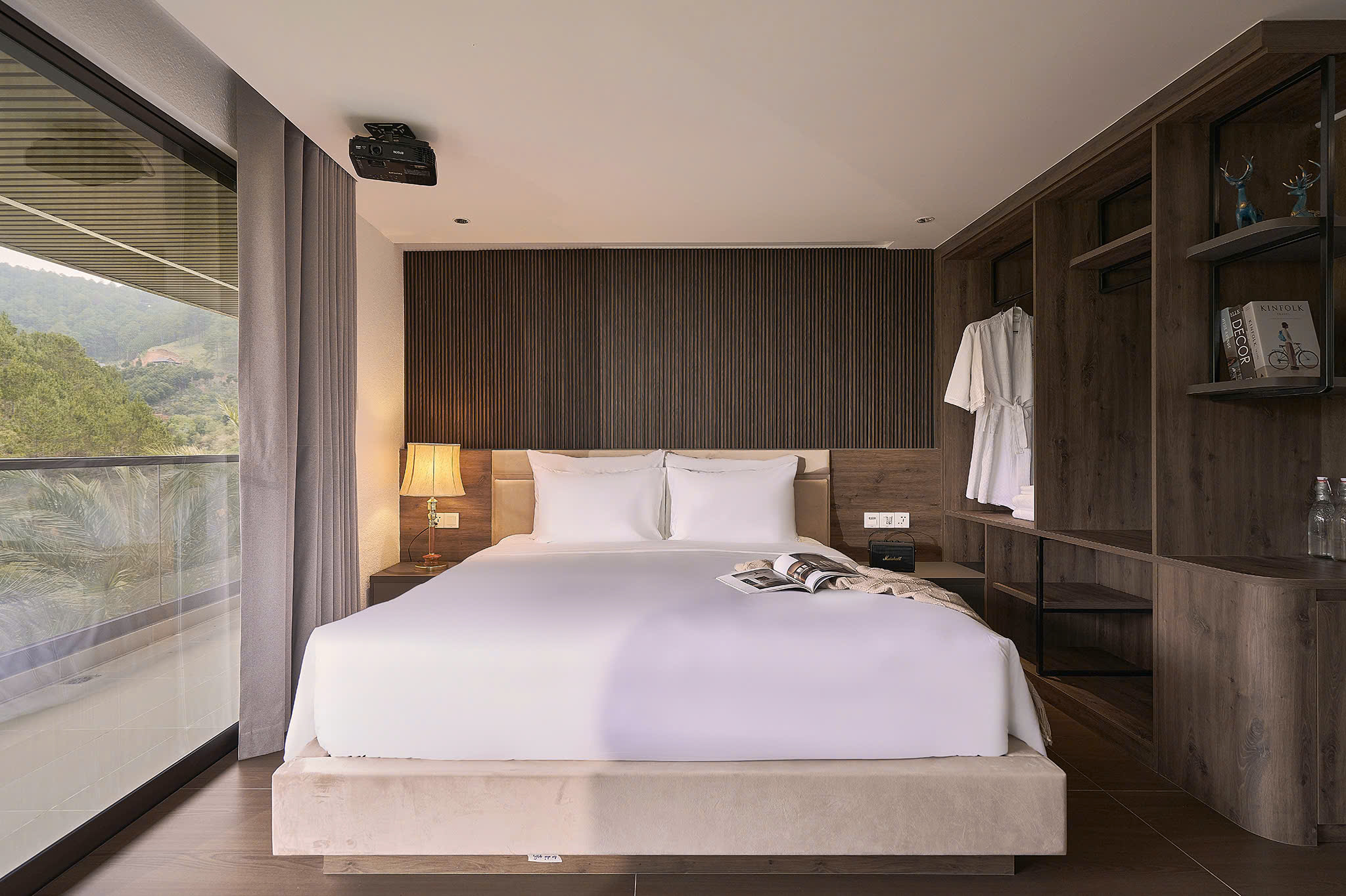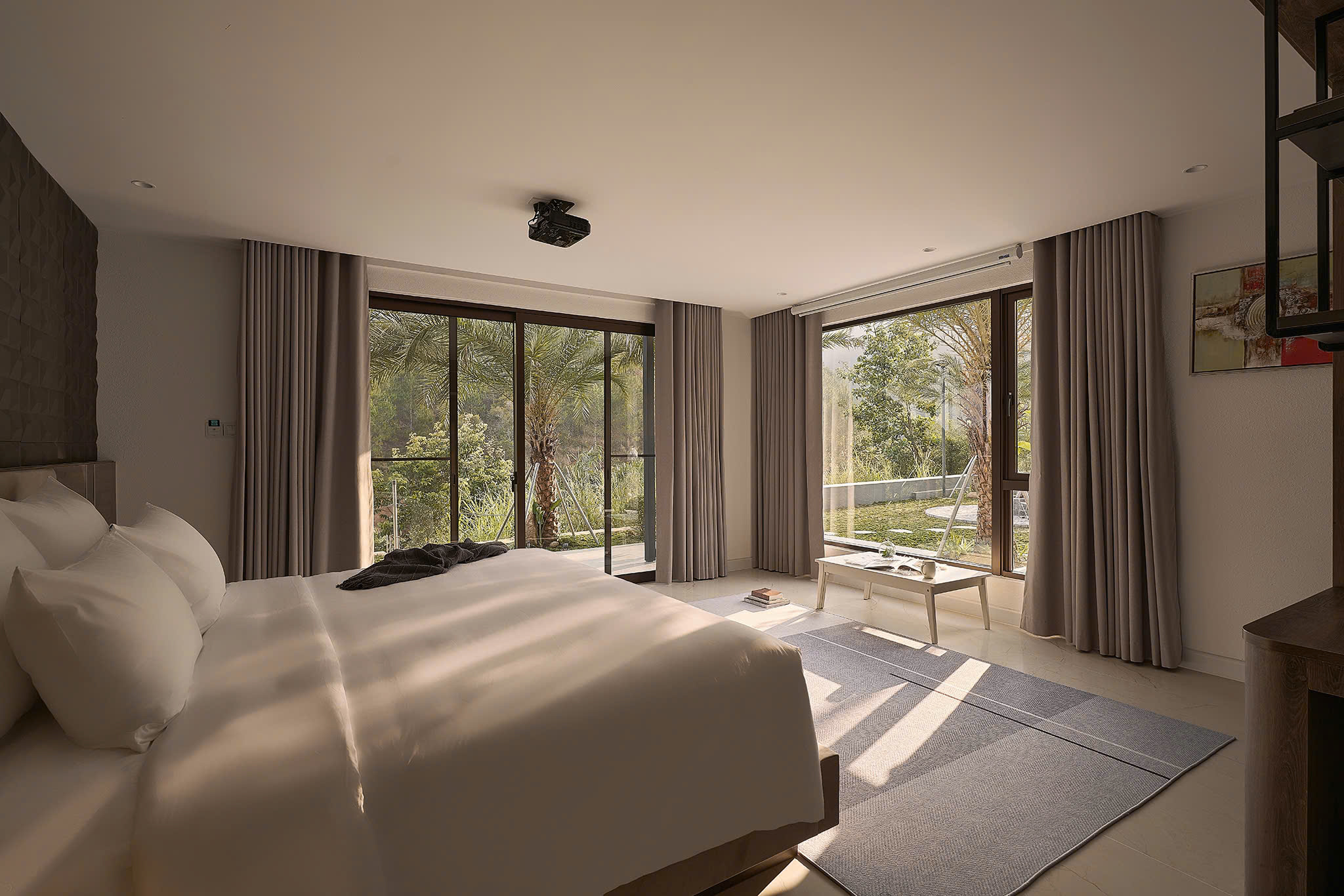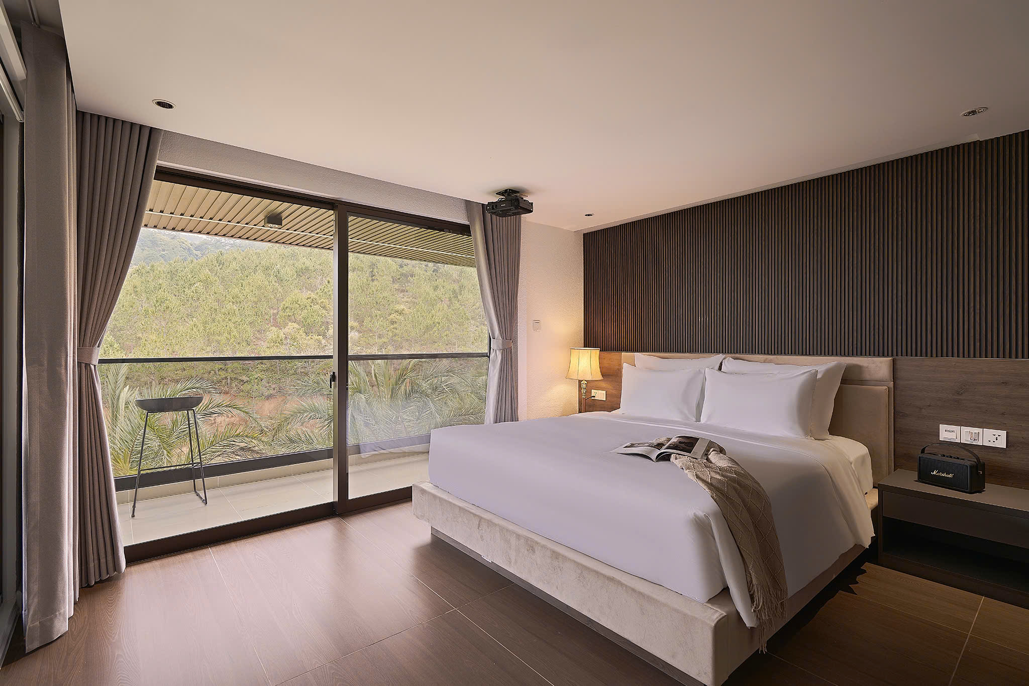 - CƠ CẤU: 4 phòng ngủ (wc riêng) P.101 và 102 : diện tích từ 40m2, bồn tắm, lối đi riêng bên ngoài, máy chiếu Căn hộ bên trong: diện tích mỗi phòng ngủ từ 30m2, buồng tắm đứng, bếp, máy chiếu, ban công lớn Sân BBQ, view rừng thông, lửa trại (Củi có tính phí) Đường vào lớn, Chỗ đậu xe thoải mái
